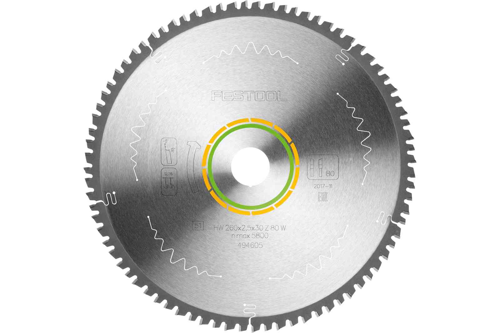 Пильный диск с мелким зубом Festool 260x2,5x30 W80
